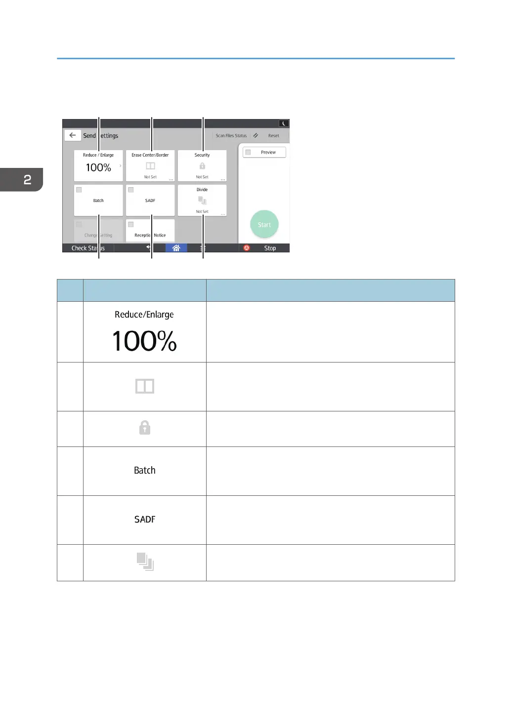 Press to divide a multi-page original into parts of a specified