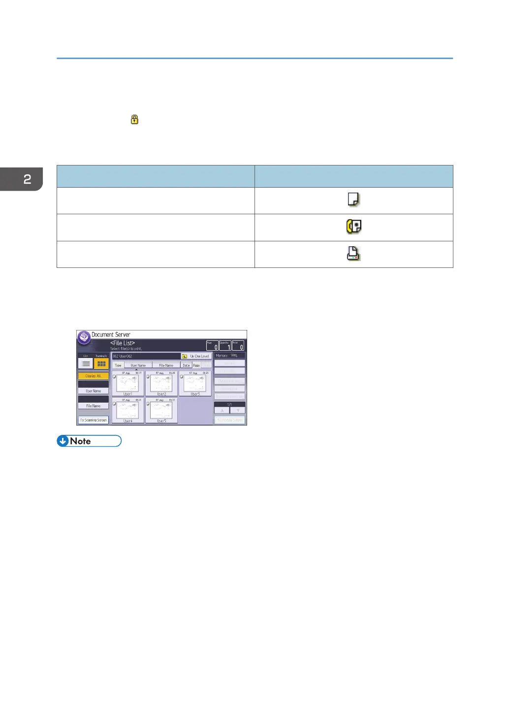 Displays an icon that indicates the function used to store the document. If a password has been specified for a