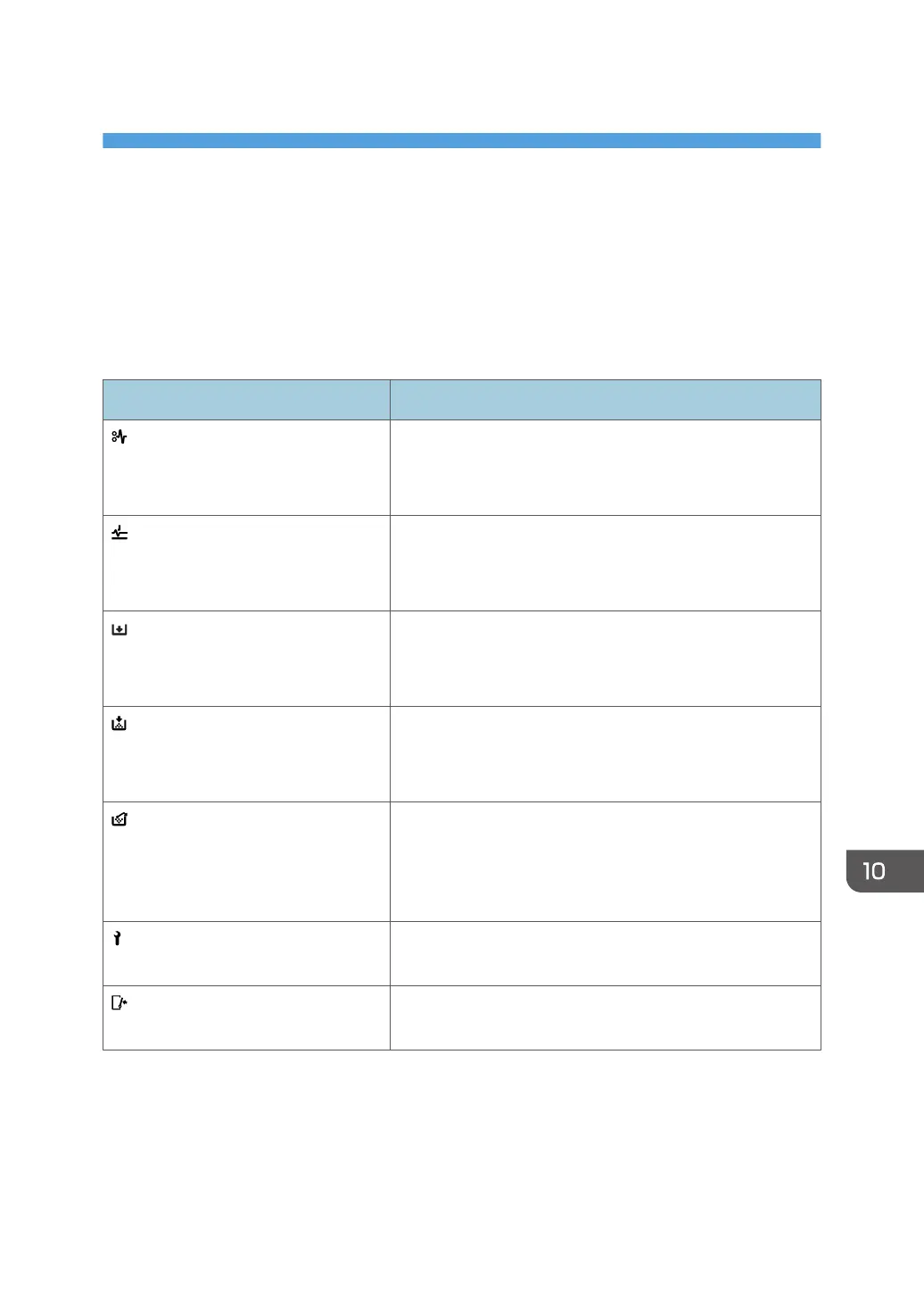 : Waste Toner Full icon Appears when the waste toner bottle is full.