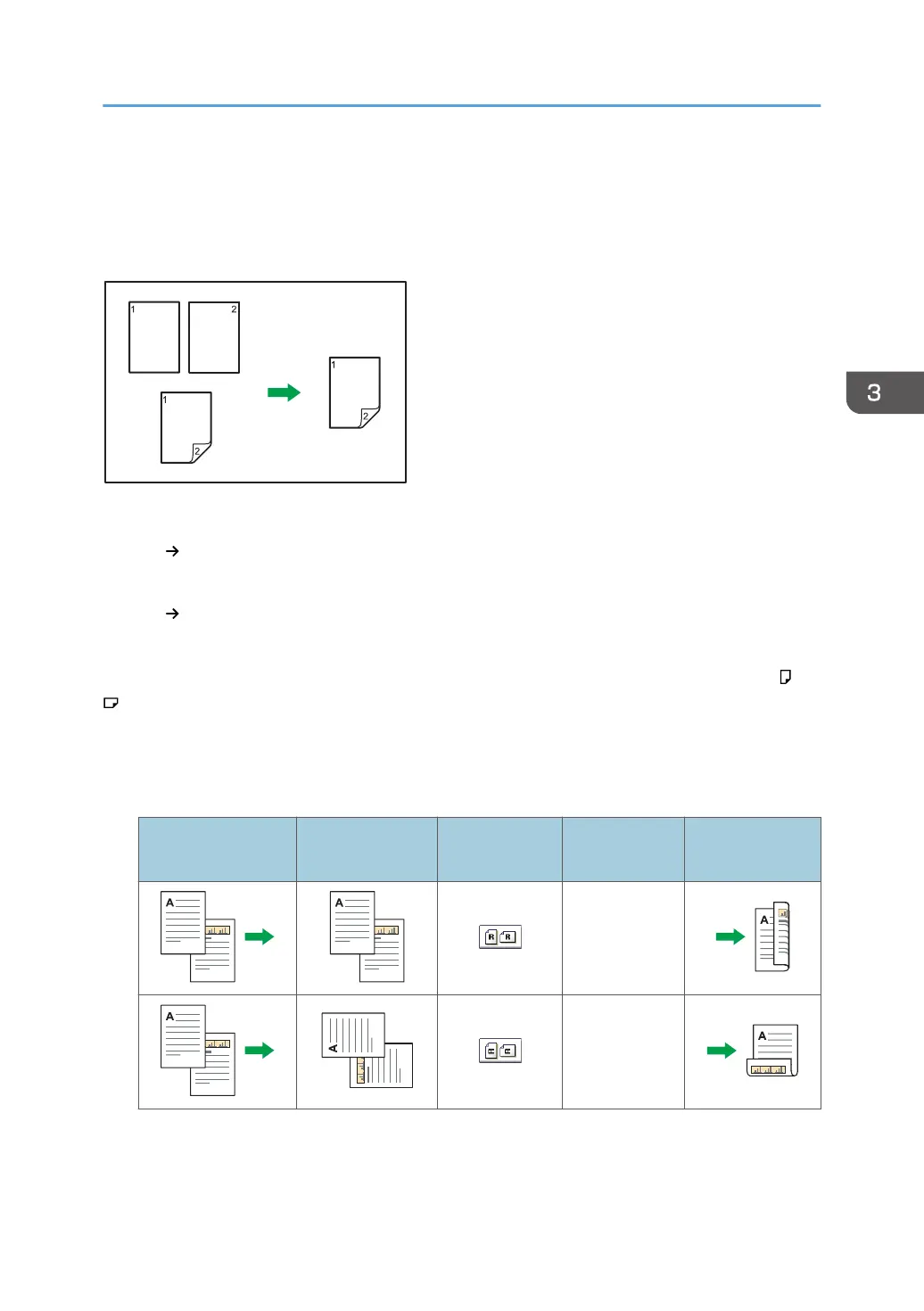 Copies two 1-sided pages or one 2-sided page onto a 2-sided page. During copying, the image is