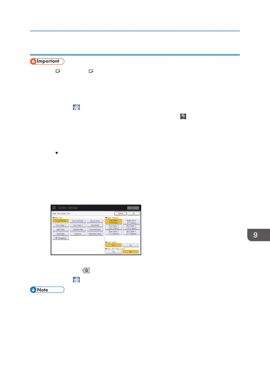 To load thick paper, press [Do not Display] on the [Paper Type] area, and then select the