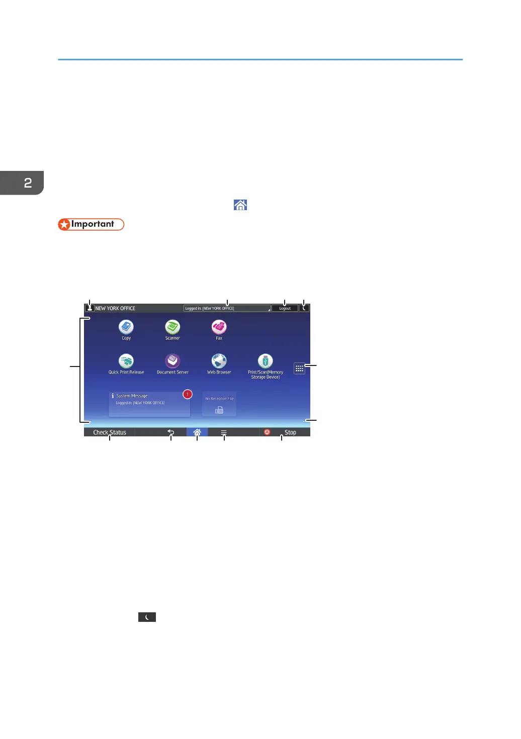 screen appears. If you have been already logged in to the machine, [Logout] appears. To log out of the