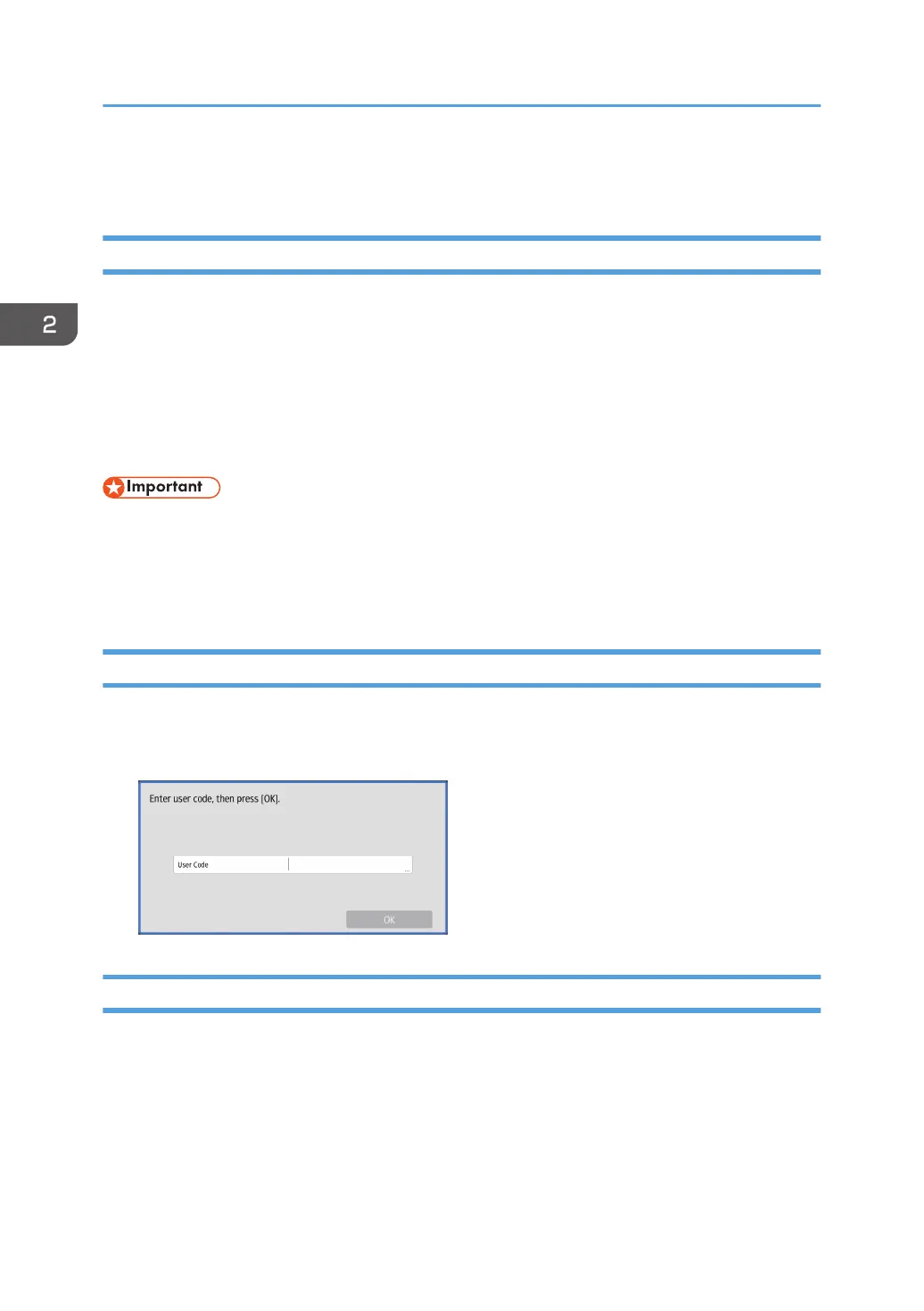 Name and Login Password. If User Code Authentication is active, you cannot use the machine until you