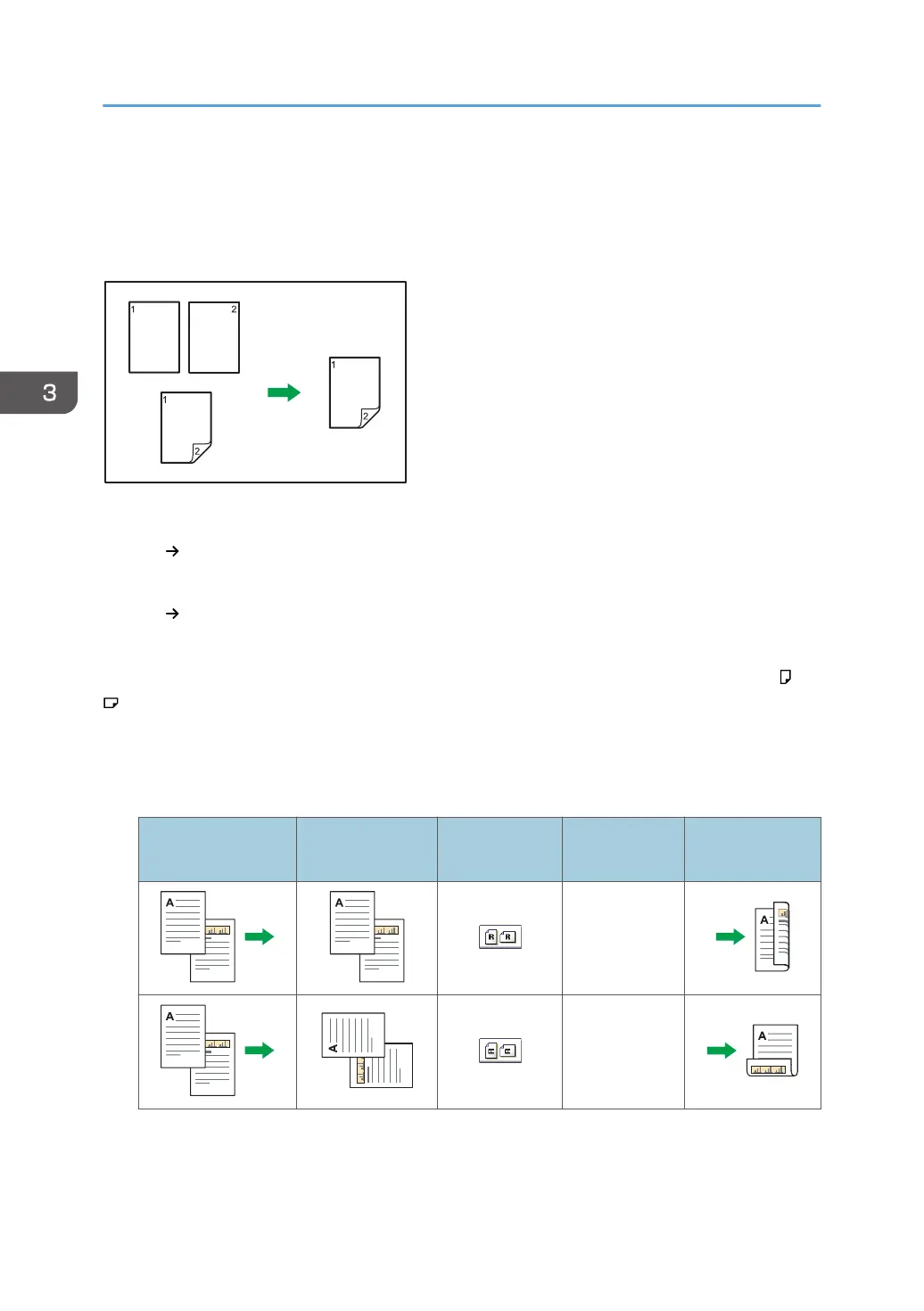 Copies two 1-sided pages or one 2-sided page onto a 2-sided page. During copying, the image is