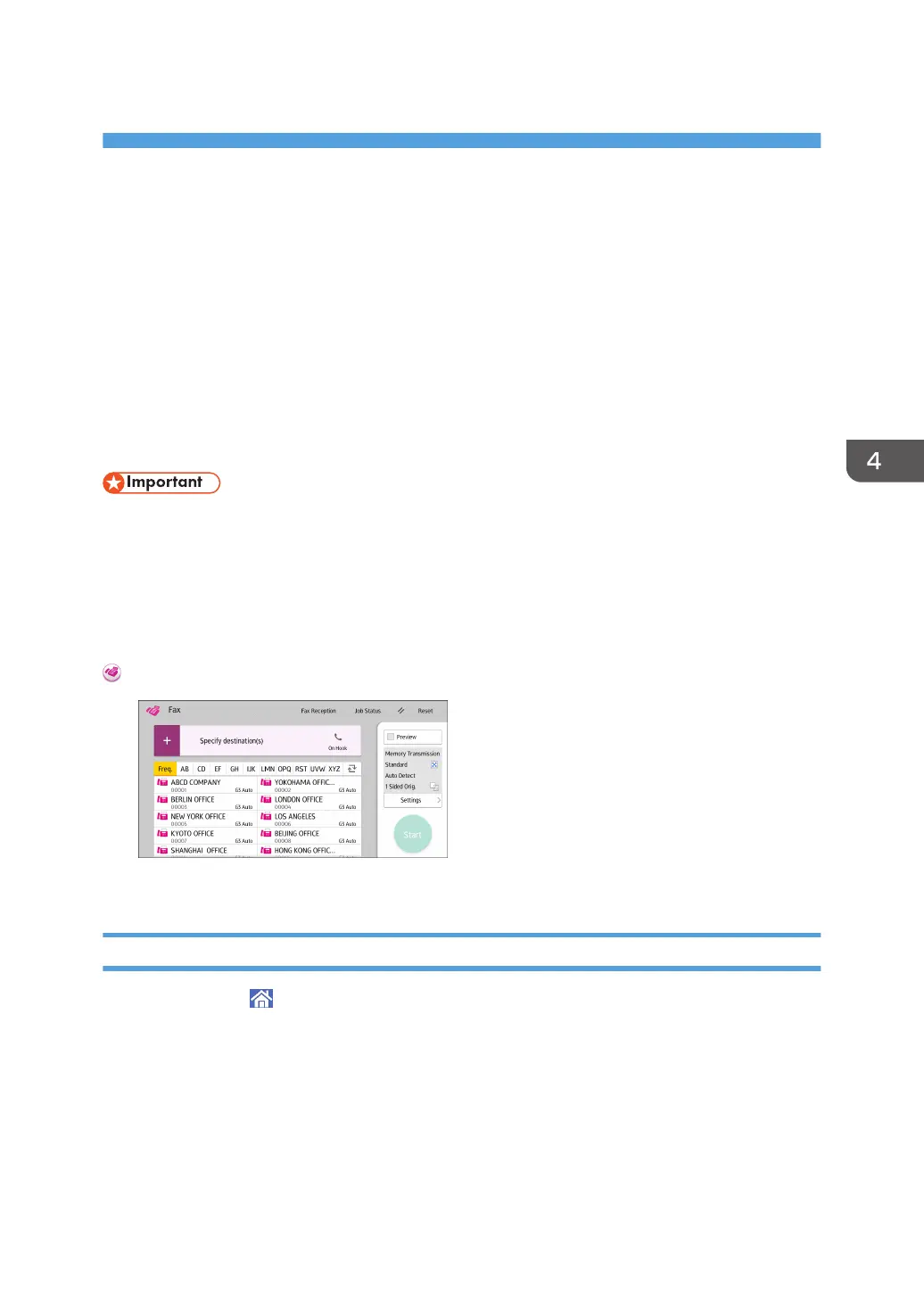 You can specify the fax, IP-Fax, Internet Fax, e-mail, or folder destinations. Multiple types of destination