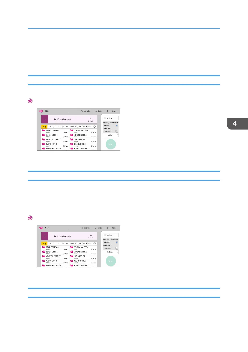 About how to use the application's screen, see page 43 "[Fax] Screen".