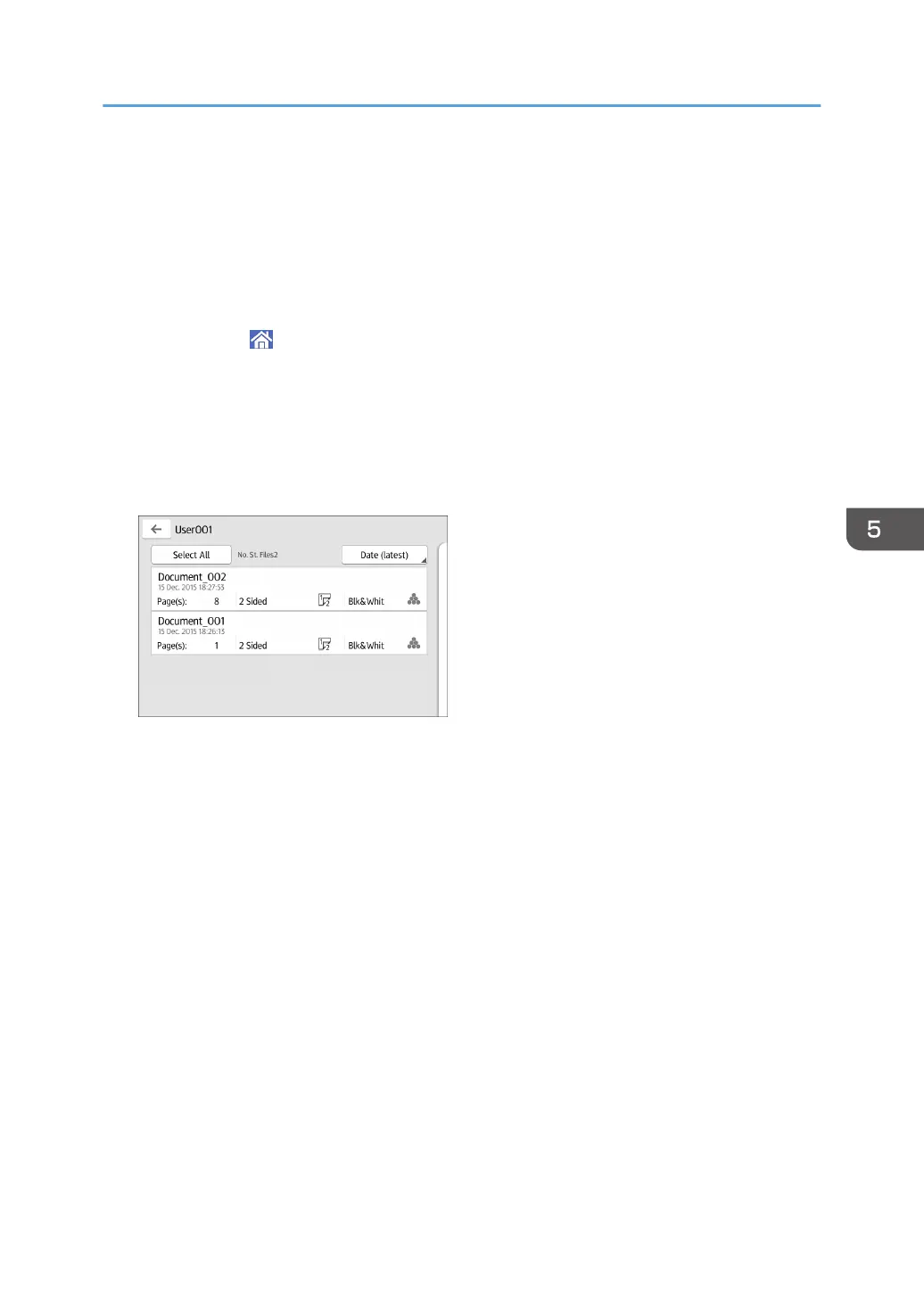 that are stored on the machine. From the list, any documents can be selected and printed. The print