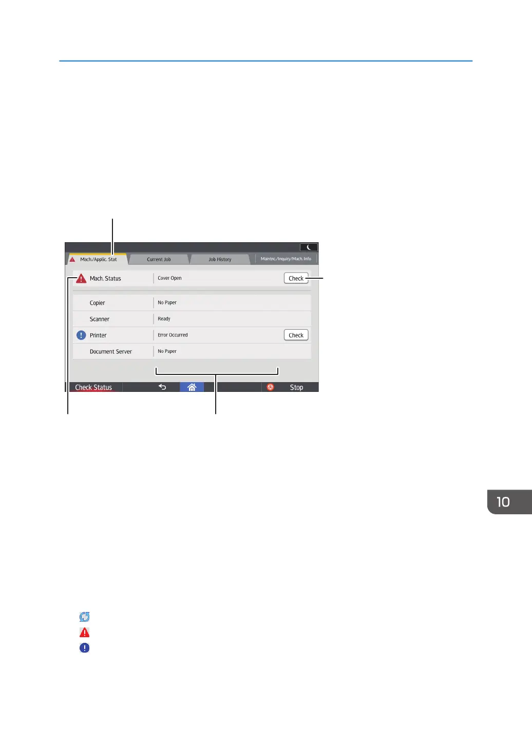 If the indicator lamp for [Check Status] lights up or flashes, press [Check Status] to display the [Check