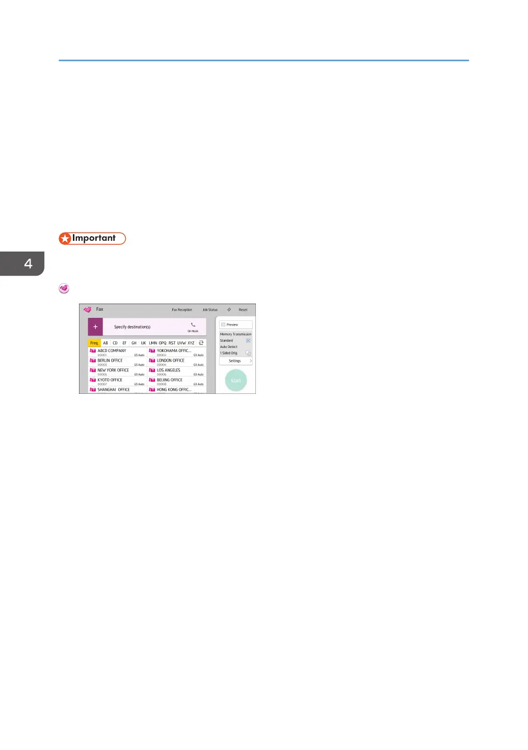 About how to use the application's screen, see page 43 "[Fax] Screen".