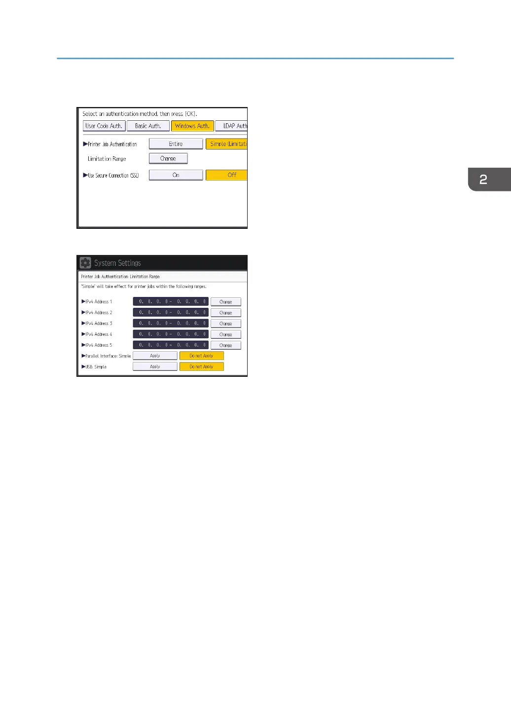 13. Specify the range in which [Simple (Limitation)] is applied to "Printer Job Authentication".