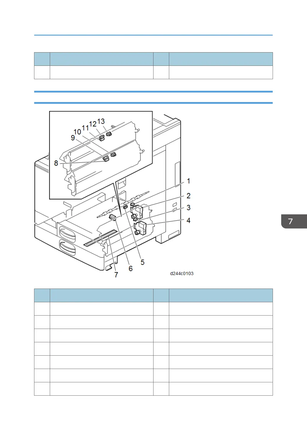 2 Lift motor (1st feed tray) 9 Paper end sensor (2nd feed tray)