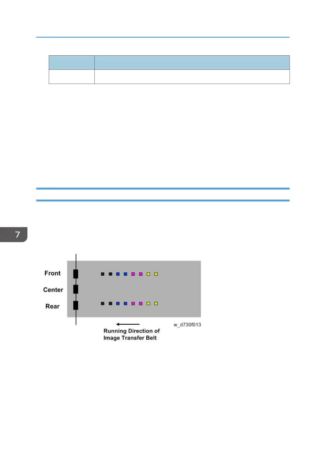 During printing, 5 mm patterns are created outside the normal imaging area on the transfer belt, and the