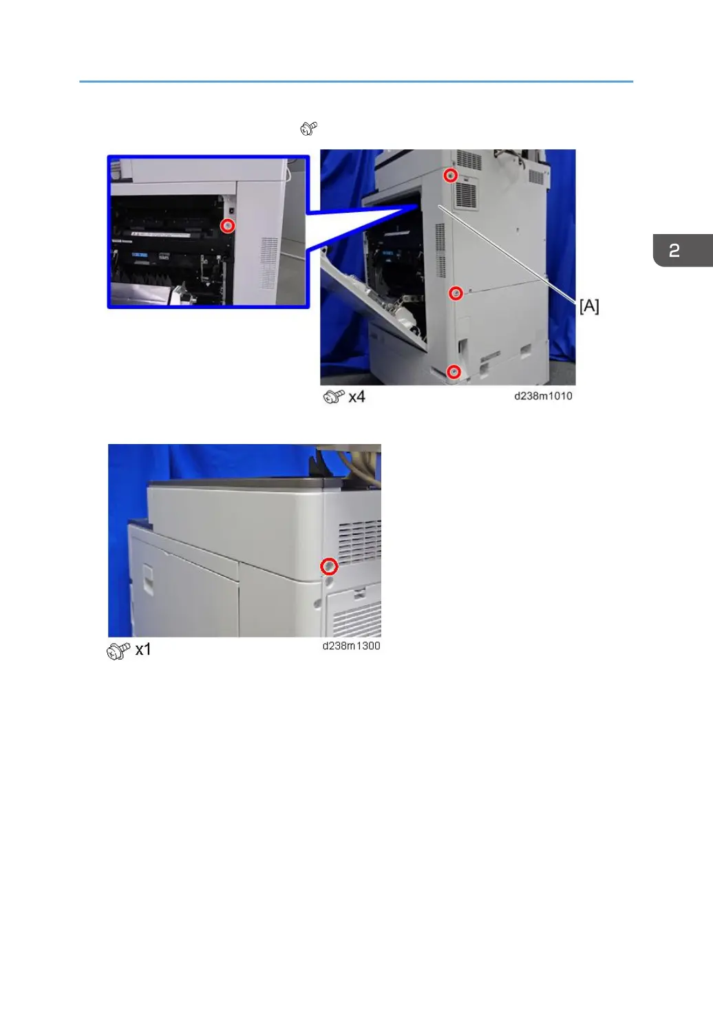 10. Remove the right rear cover [A] ( x4, among them, tapping screw x1)