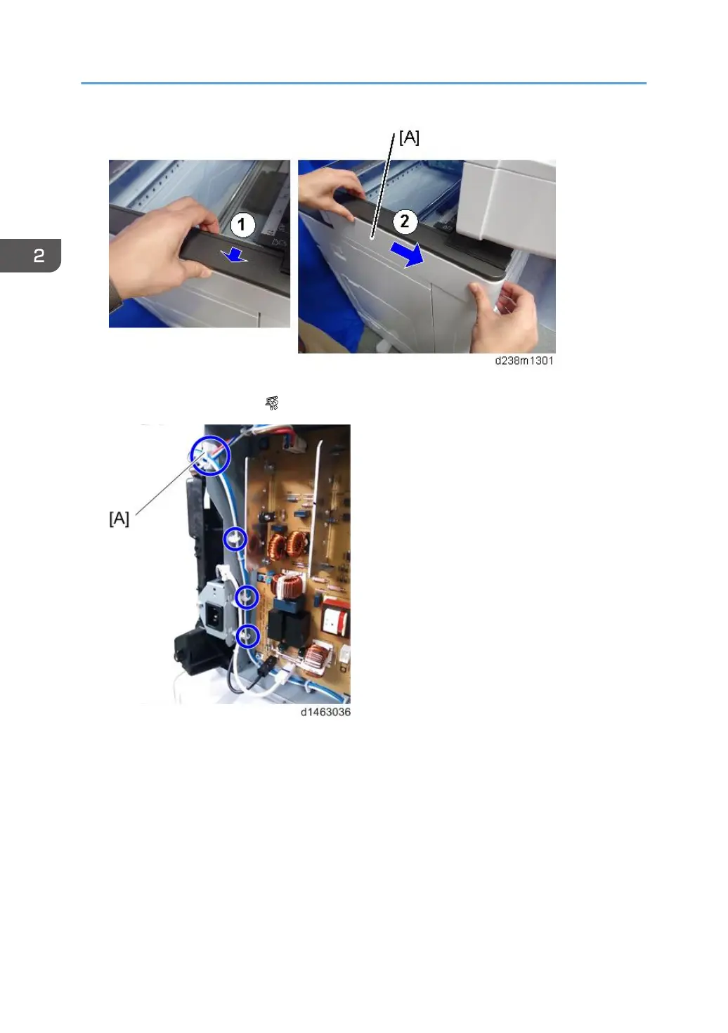 13. Route the harness around the outside of the PSU and pull the harness out of the electrical