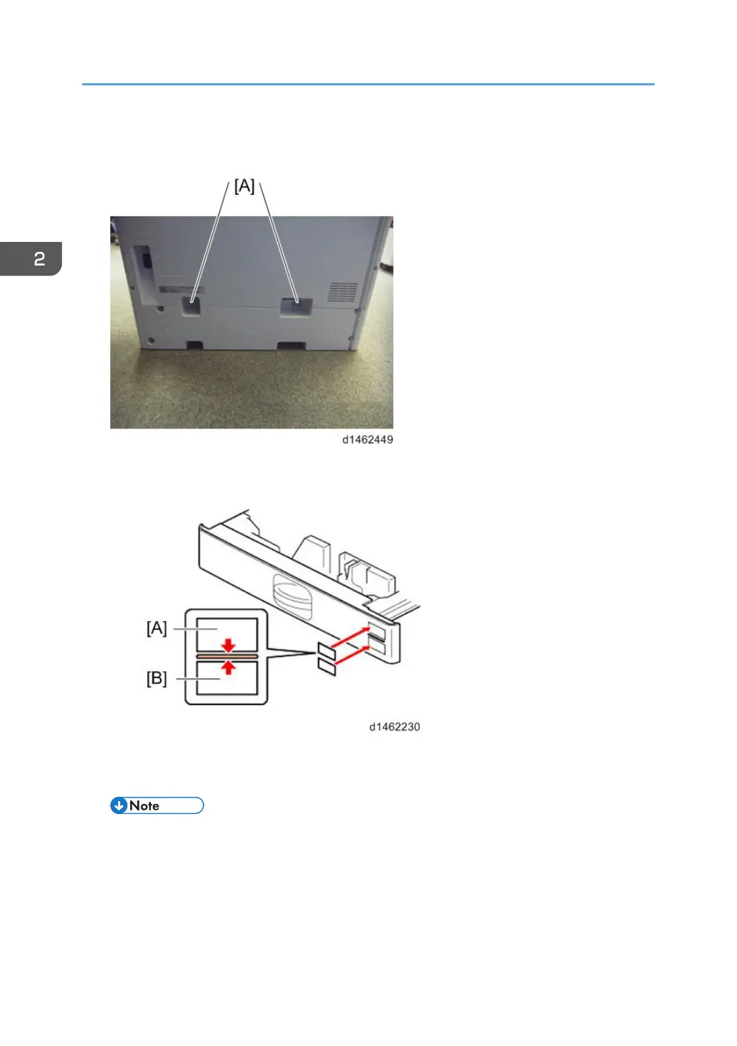 6. Attach the securing brackets [A] to two positions on the left and right at the rear of the