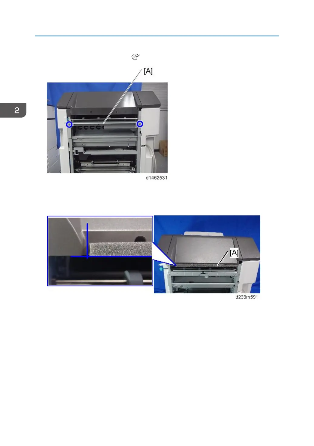 Make sure that the cushion is aligned with the front-lower edge [A] of the upper cover.