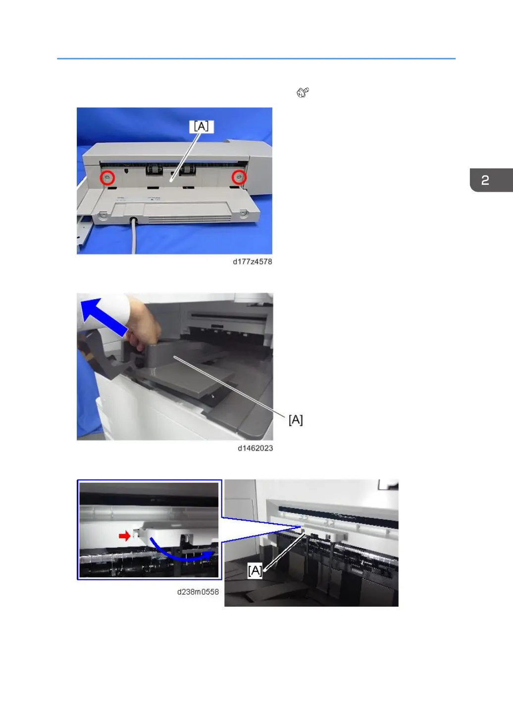 7. Attach the paper exit cover (removed in step 4) [A] ( x 2).