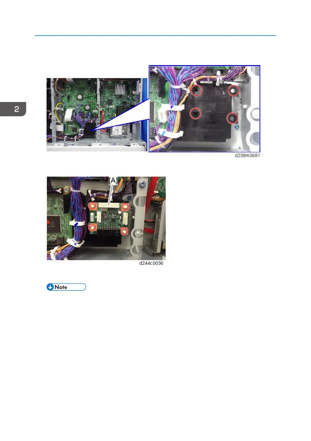 5. Connect the harness [A] of the MFP to the white connector (13 pins) [B].