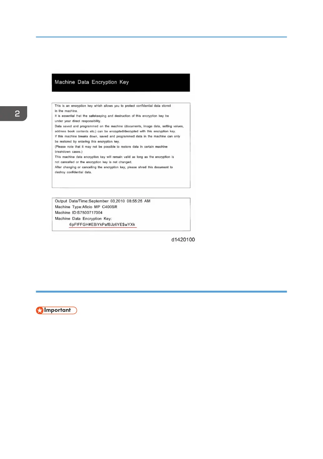 • The encryption key is required for data recovery if the machine malfunctions. Be sure to store the