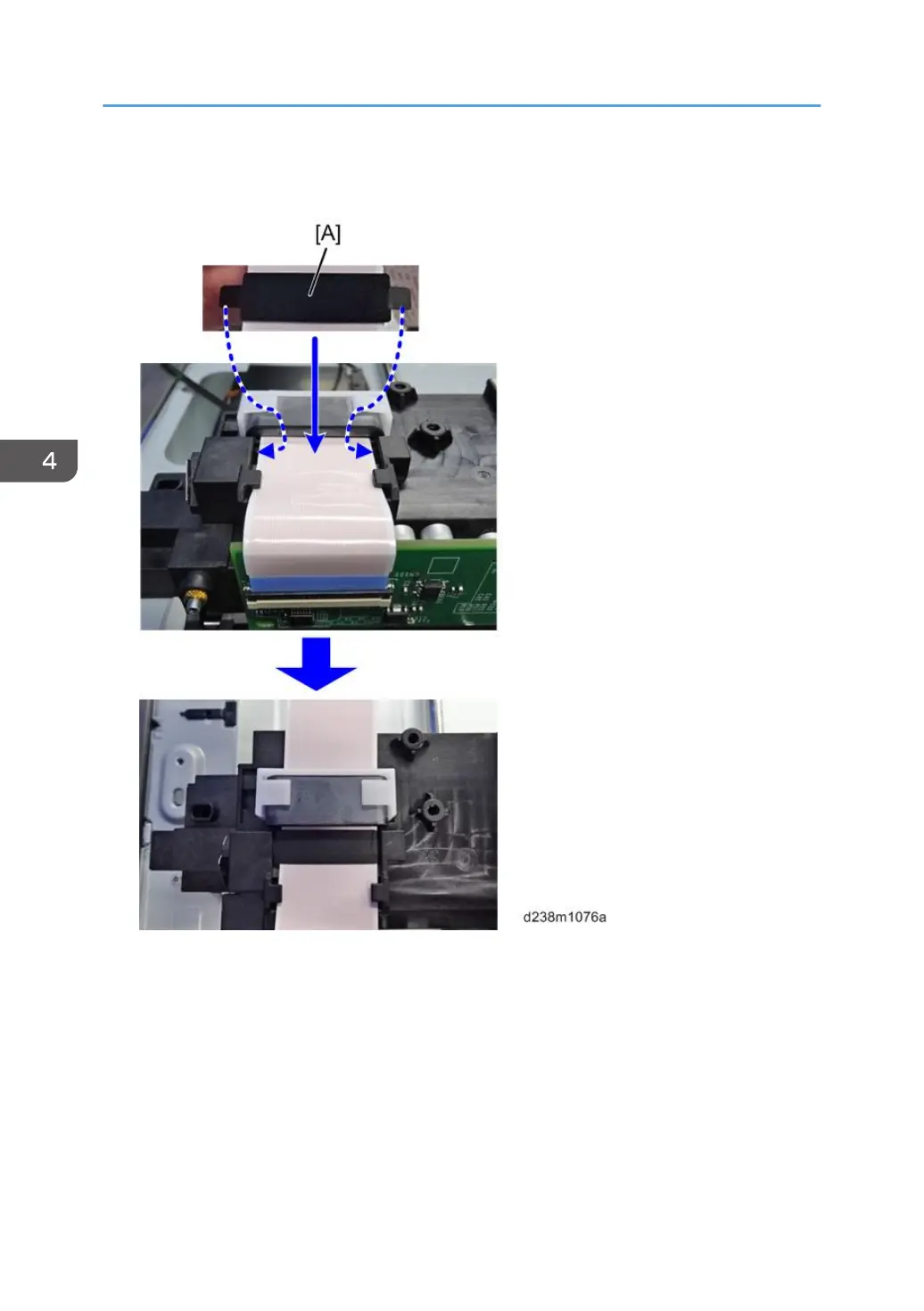 3. Attach the Mylar [A] to the FFC from above, and then insert the tabs at both ends of the