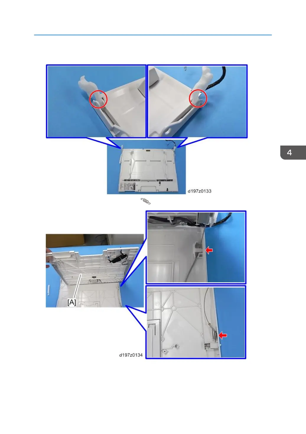 5. Bypass tray upper cover [A] (pin x 1, x1)