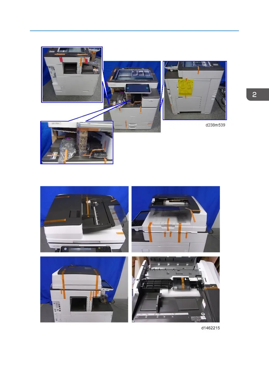 For a model on which ARDF DF3090 is preinstalled, remove the orange tapes and retainers on the