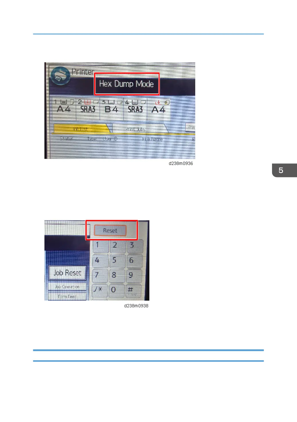 13. "Hex Dump Mode" is be displayed in the top left of the display panel.