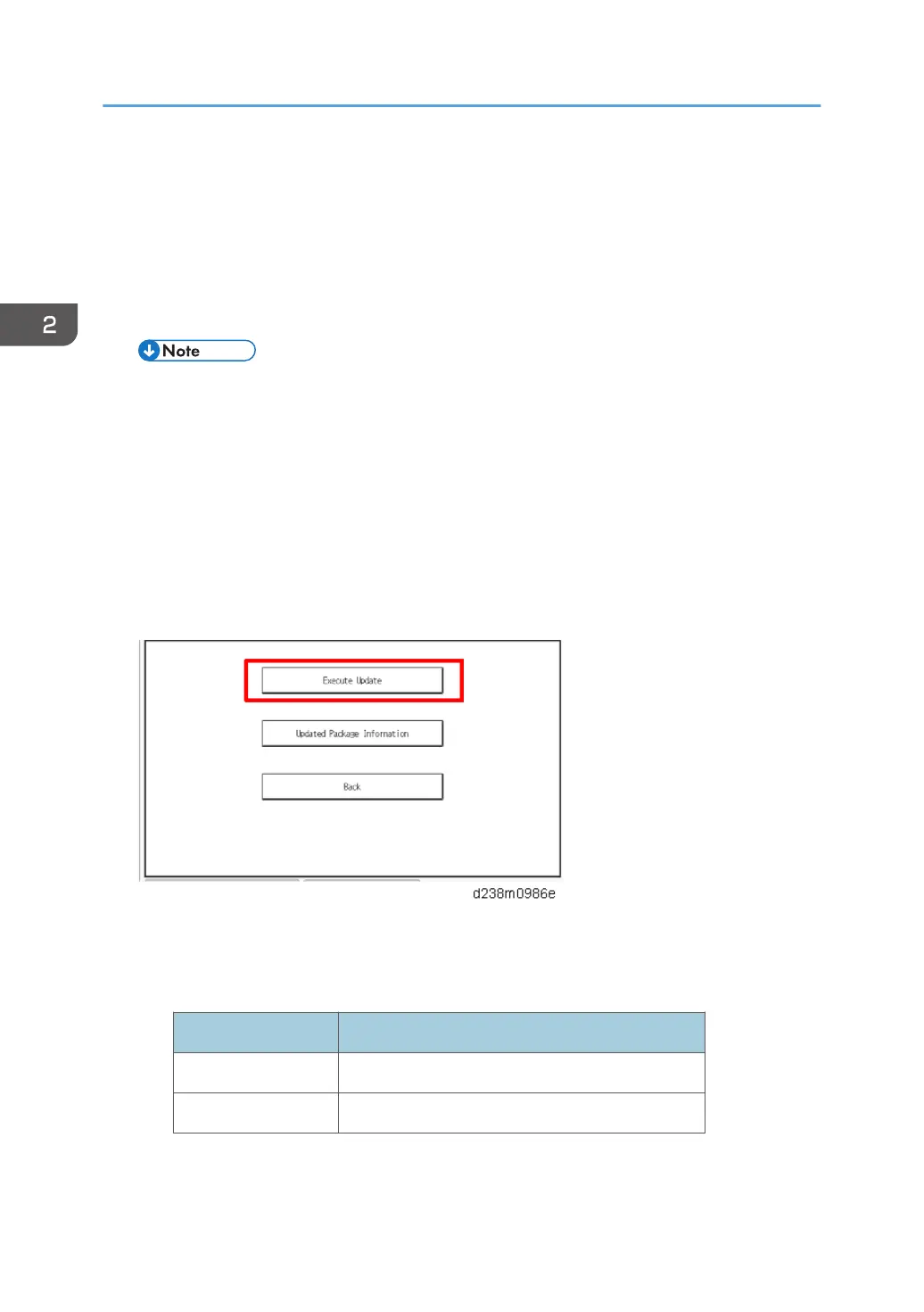 • If an error code appears when you click “Execute update”, the machine is in the following