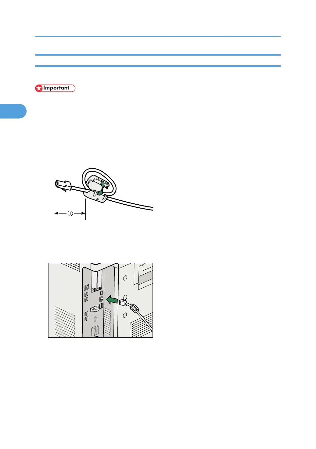 1. A ferrite core for the Ethernet interface cable is supplied with this machine. Make a loop in