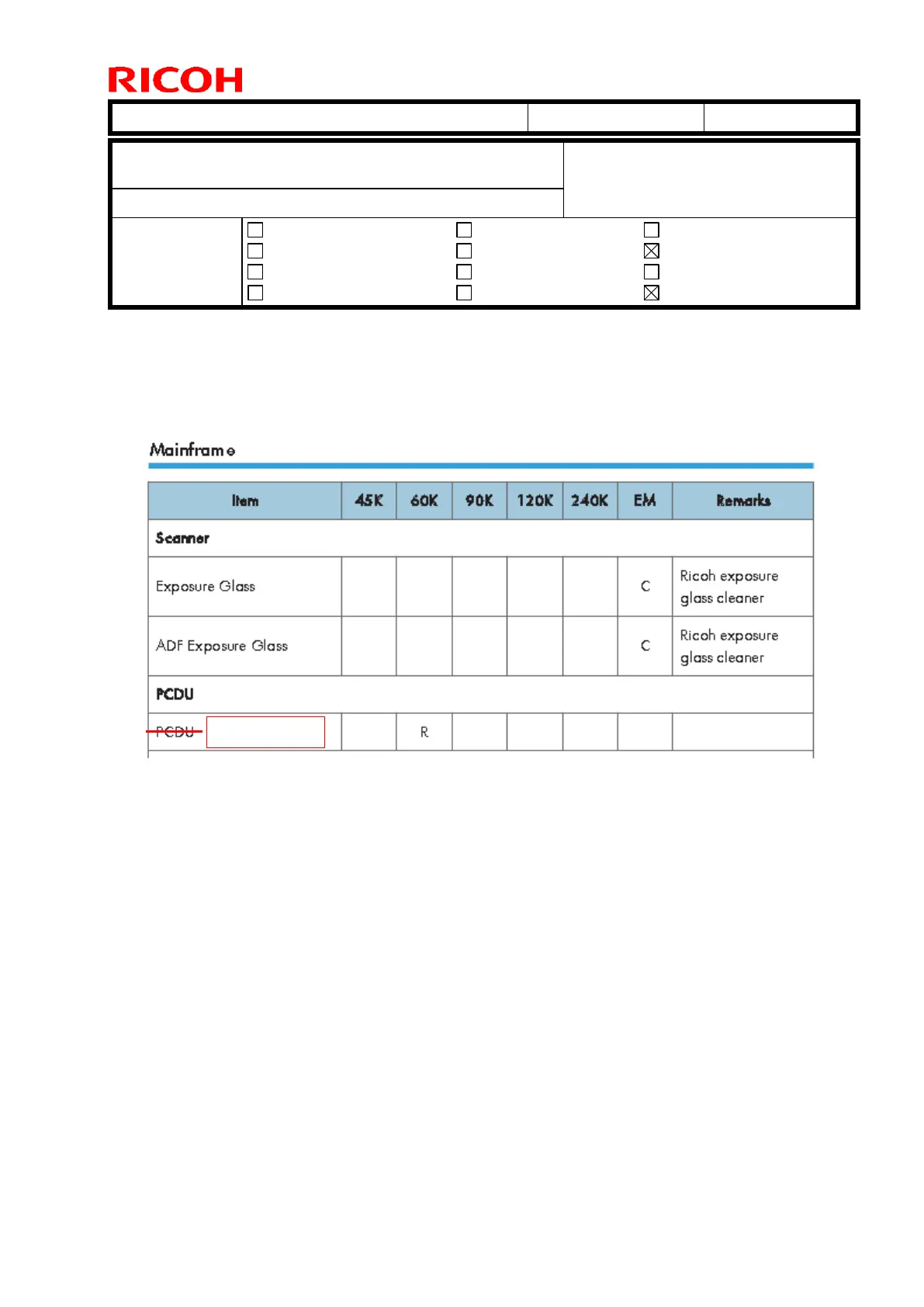 Ricoh MP C305SPF - RTB 47: Service Manual Correction: Maintenance Tables