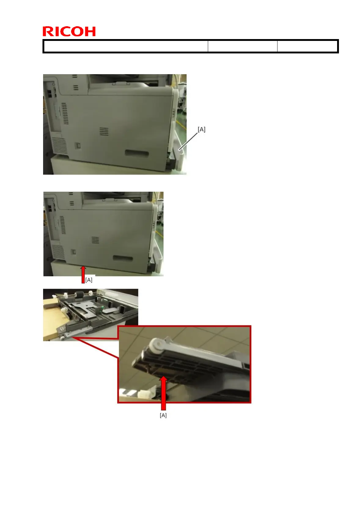 2. Lift up the machine and push the tray from underneath [A] toward the operator side