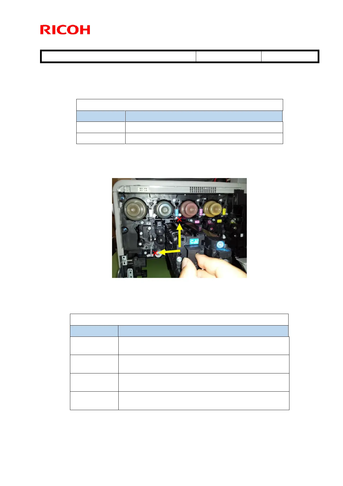 If this issue still stays, replace the target color’s toner hopper and PCDU as a set.