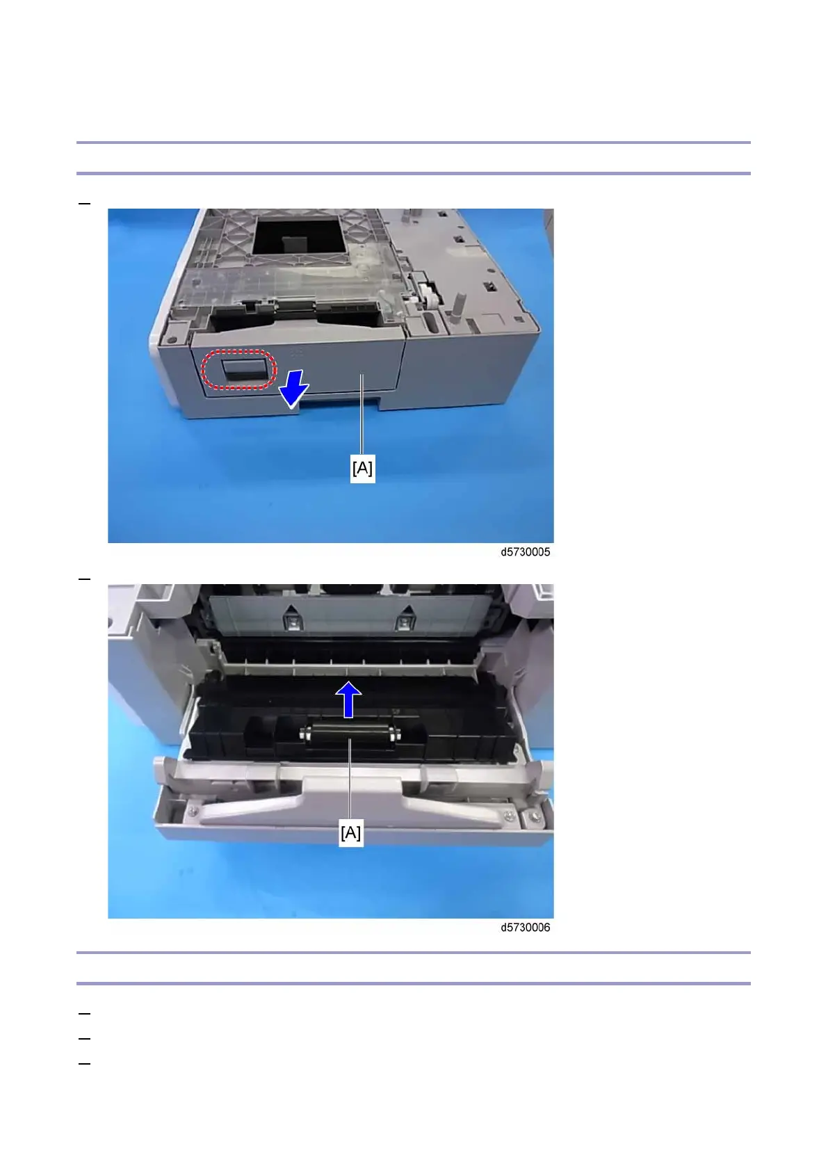 2. Remove the vertical transport roller [A]. (hooks × 2)