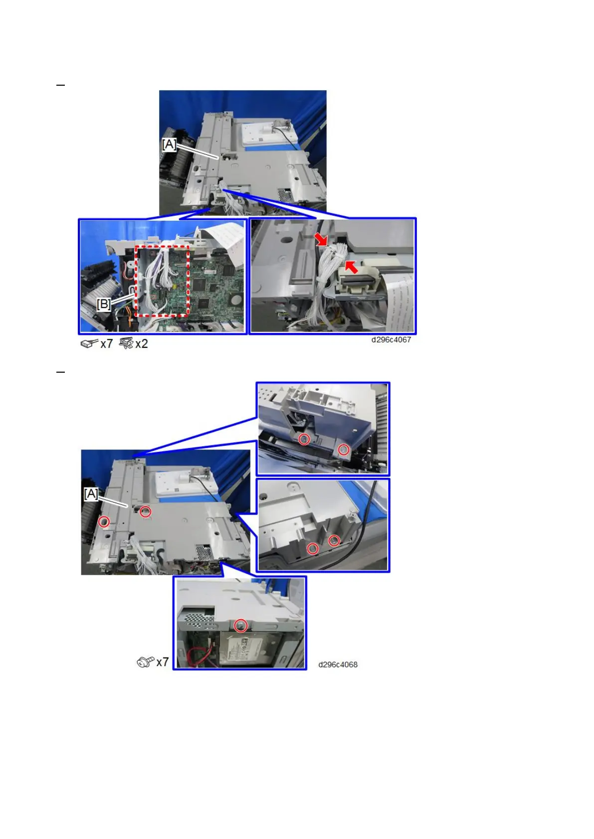 6. Disconnect the harness [B] to remove the inner cover [A].