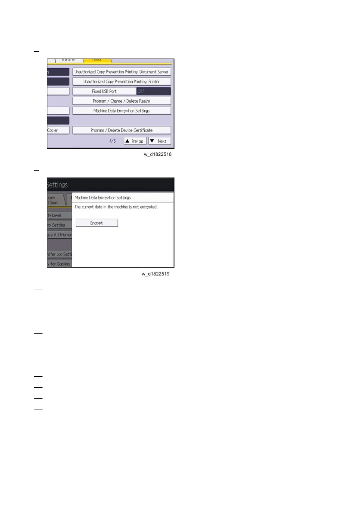 If you have selected [Print on Paper], press the [Start] key. Print out the machine's data encryption key.