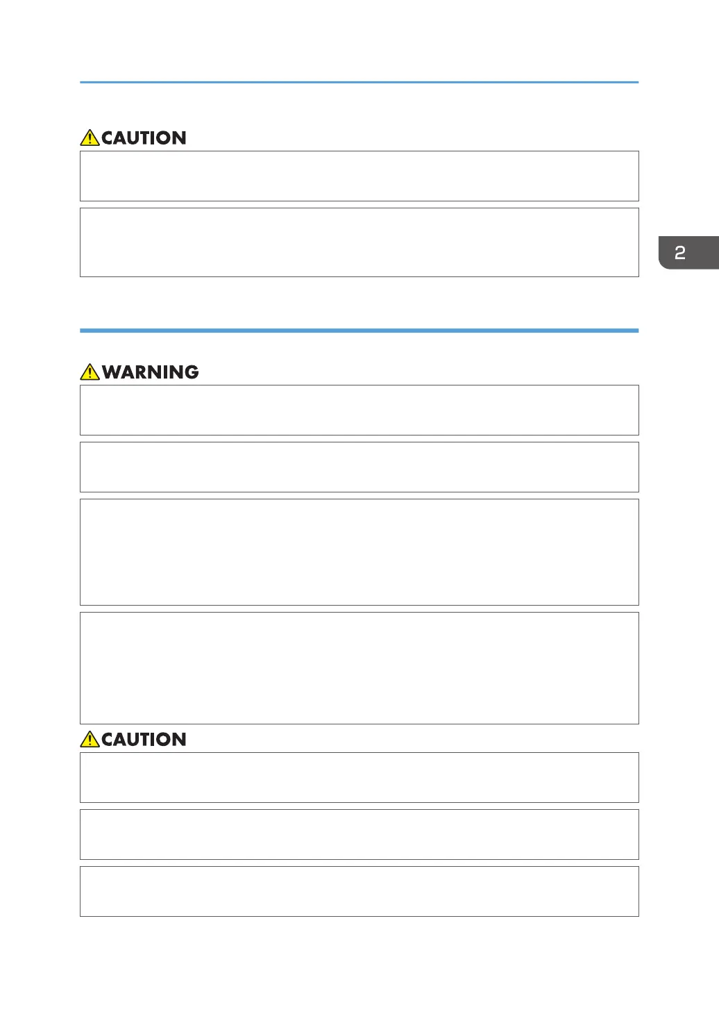 • If toner or used toner is inhaled, gargle with plenty of water and move into a fresh air