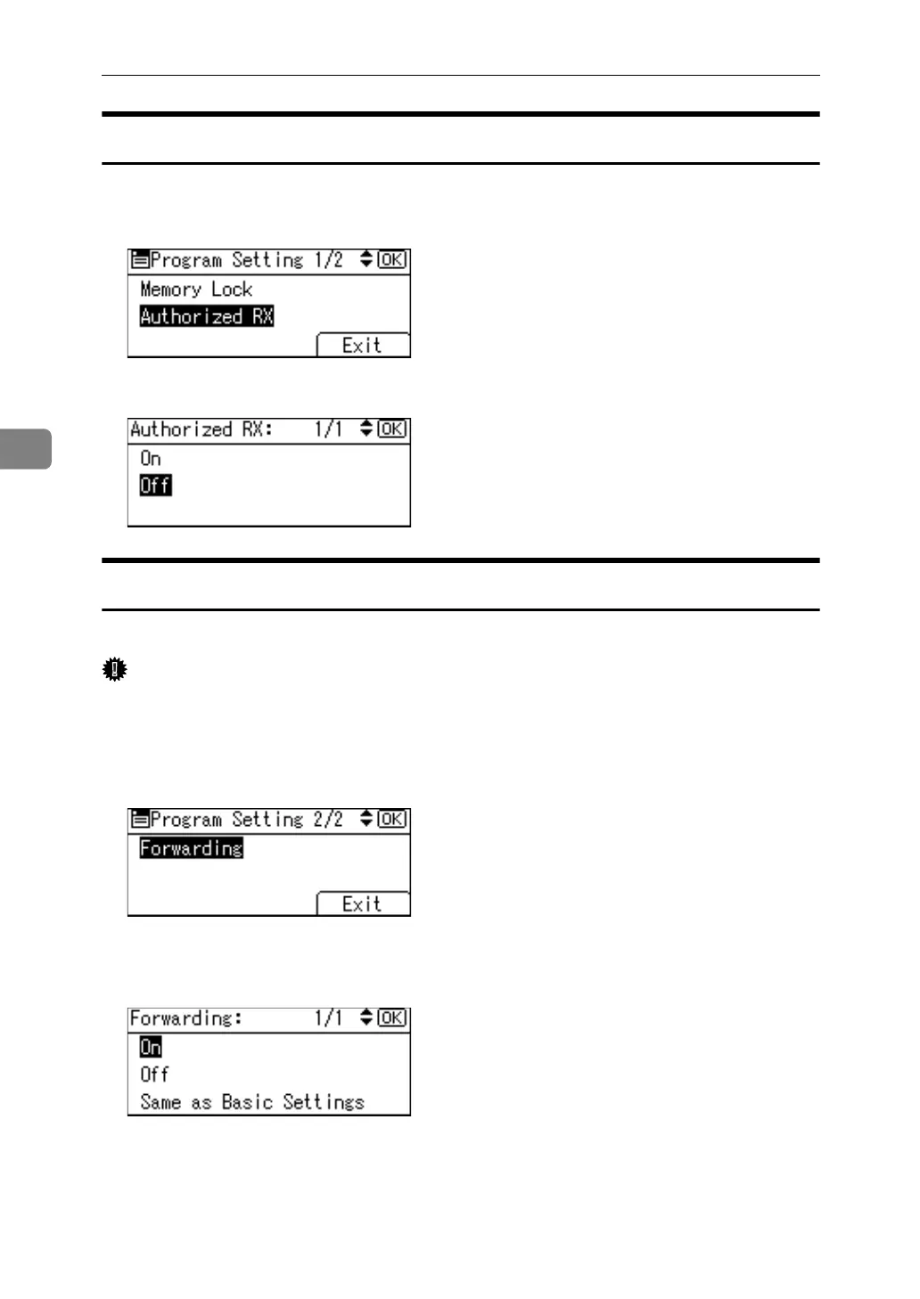 A Select [Forwarding] using {U} or {T}, and then press the {OK} key.