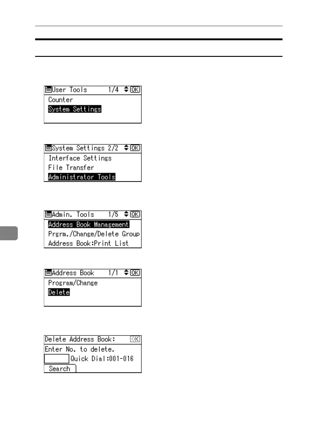 C Select [Address Book Management] using {U} or {T}, and then press the {OK}