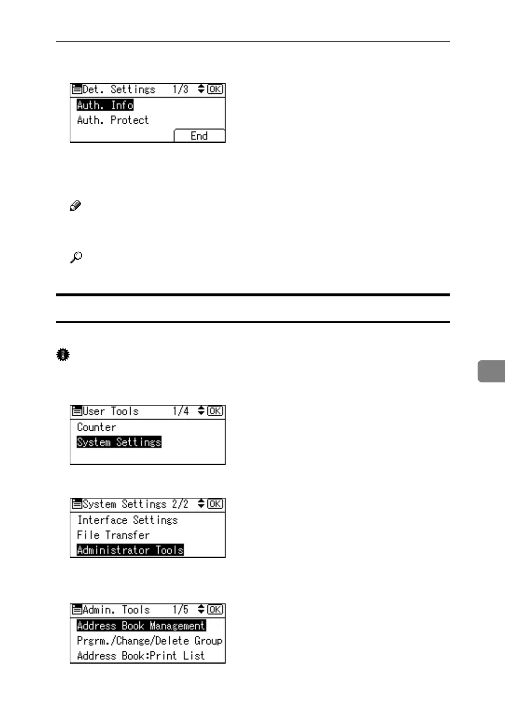 B Select [Administrator Tools] using {U} or {T}, and then press the {OK} key.