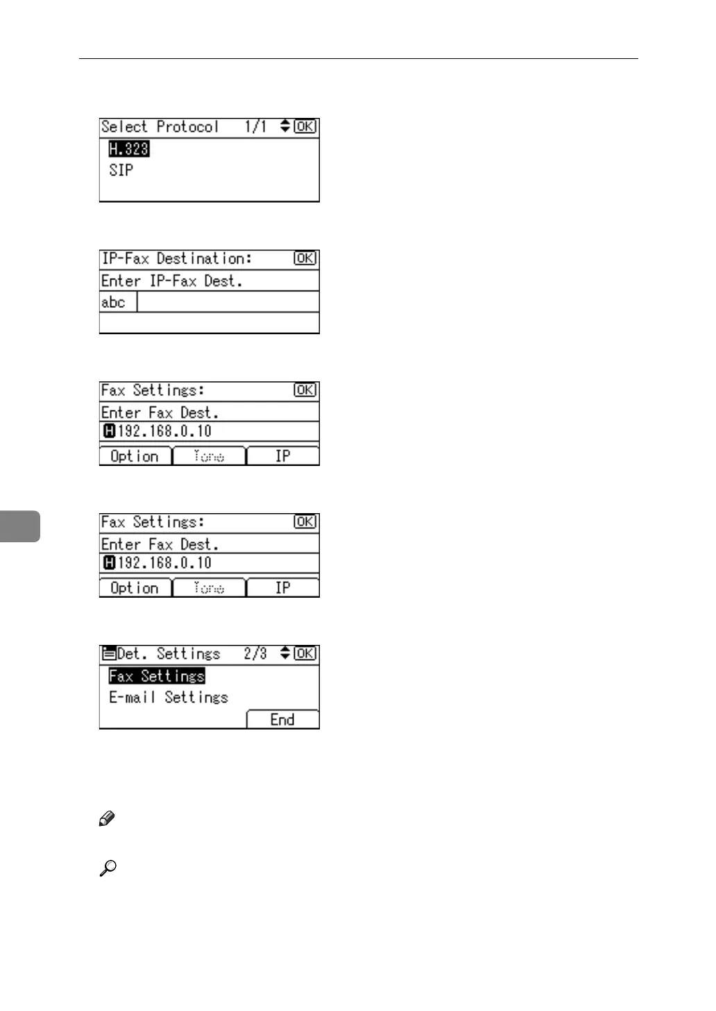 K Enter the IP-Fax destination and then press the {OK} key.