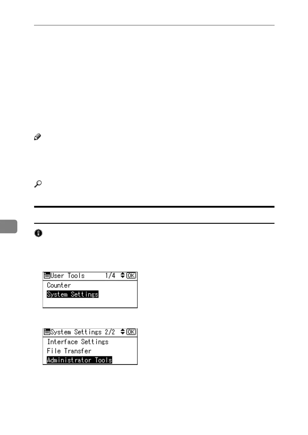B Select [Administrator Tools] using {U} or {T}, and then press the {OK} key.