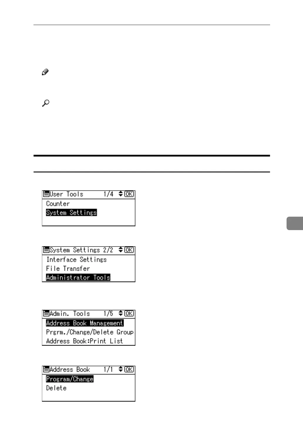 C Select [Address Book Management] using {U} or {T}, and then press the {OK}
