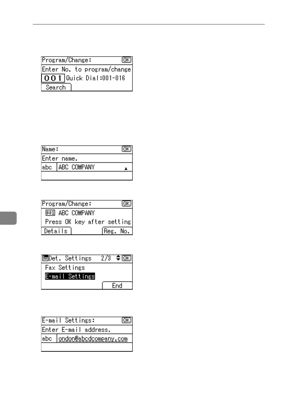 I Enter the new e-mail address using the number keys and the Quick Dial