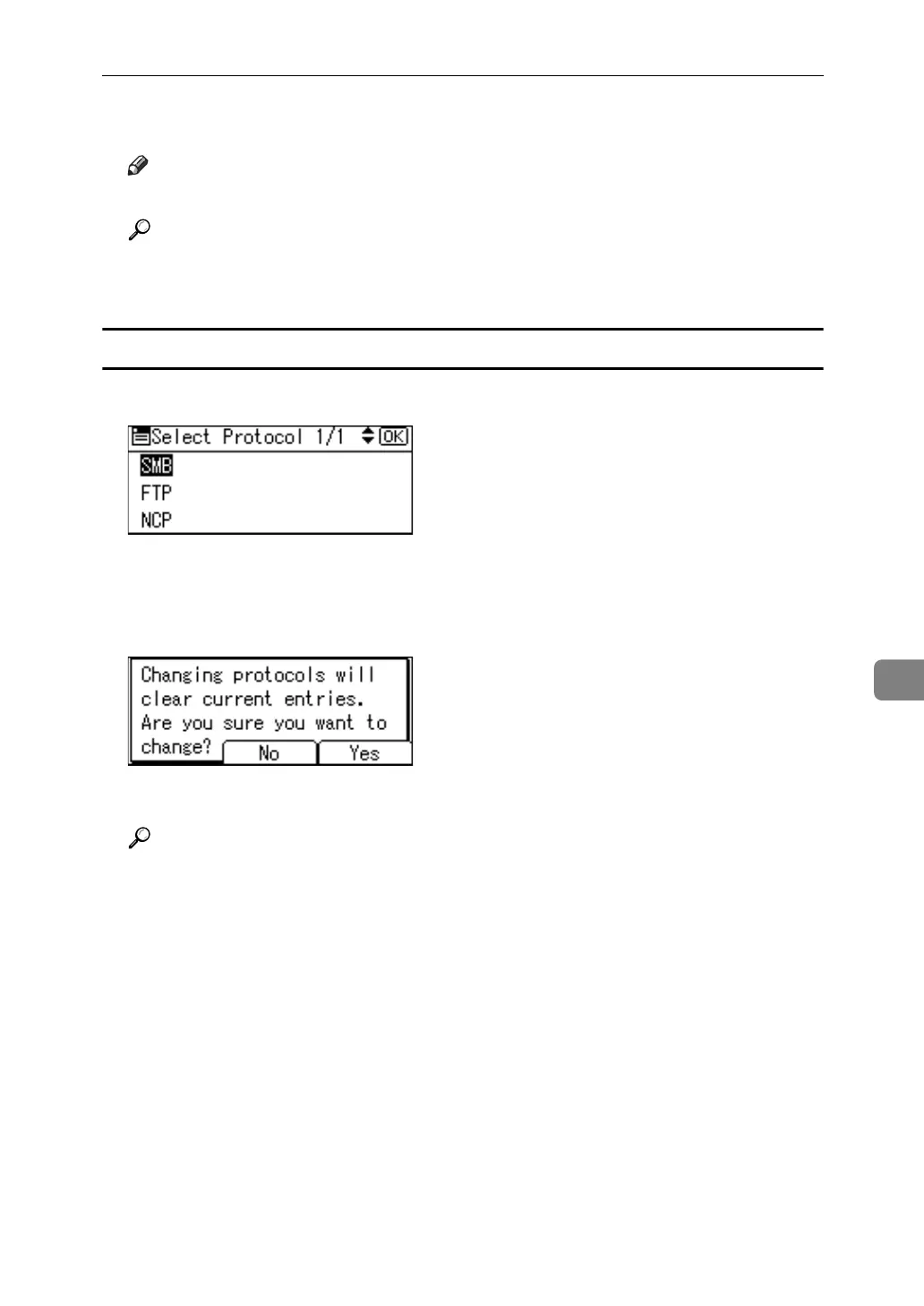 A Select [SMB] or [NCP] using {U} or {T}, and then press the {OK} key.