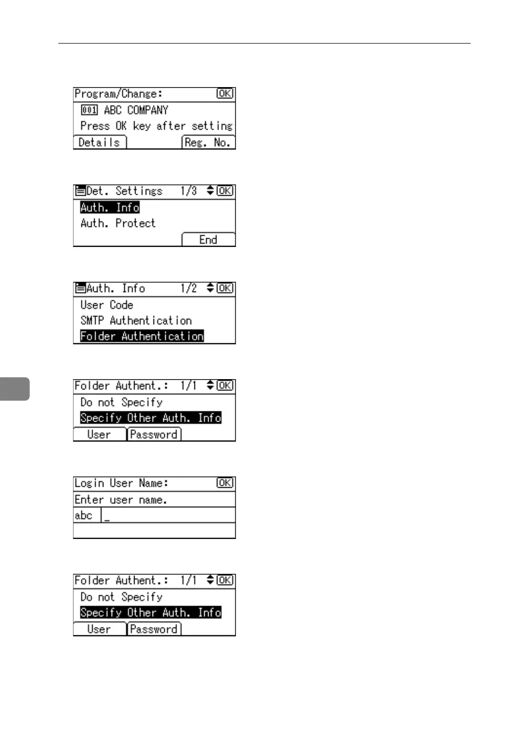 H Select [Auth. Info] using {U} or {T}, and then press the {OK} key.