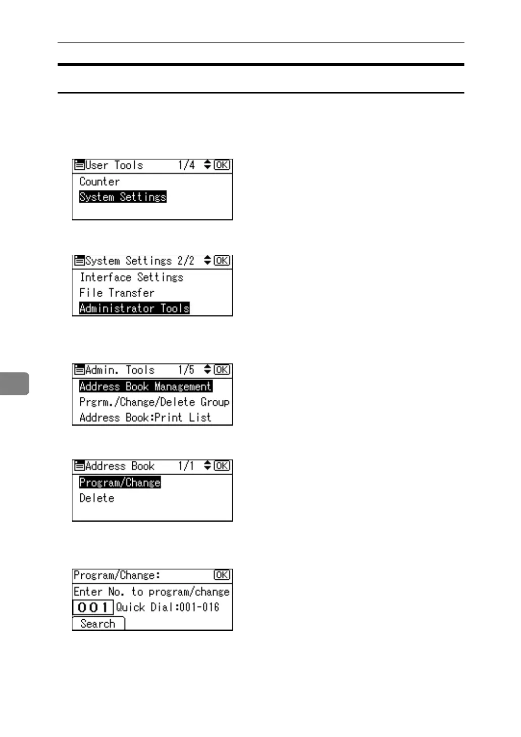 C Select [Address Book Management] using {U} or {T}, and then press the {OK}