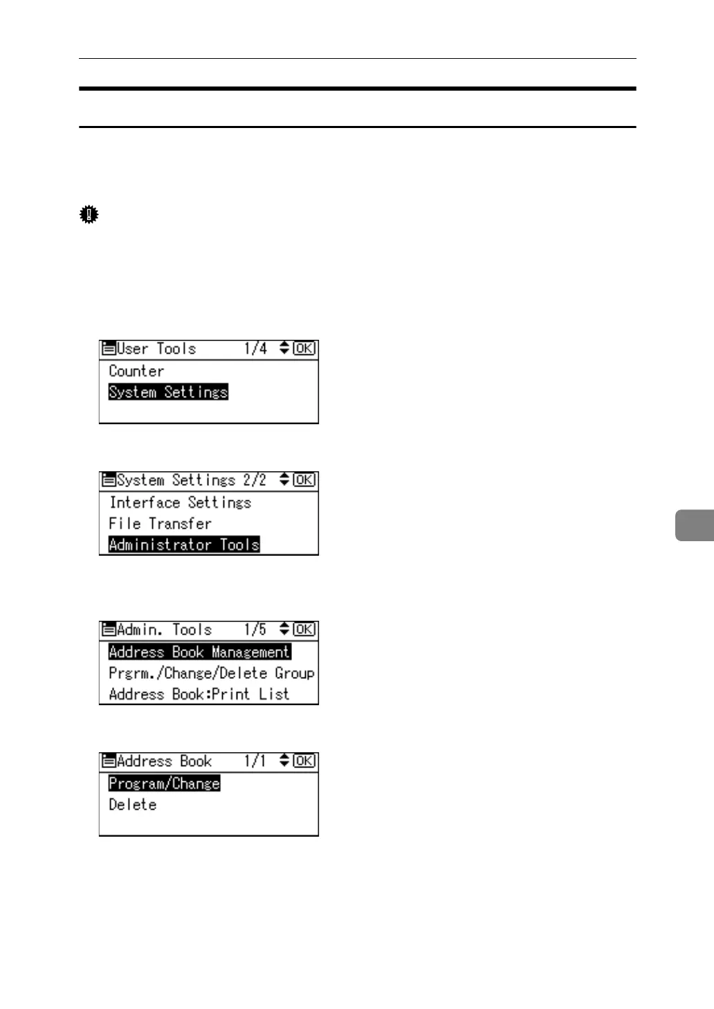 C Select [Address Book Management] using {U} or {T}, and then press the {OK}