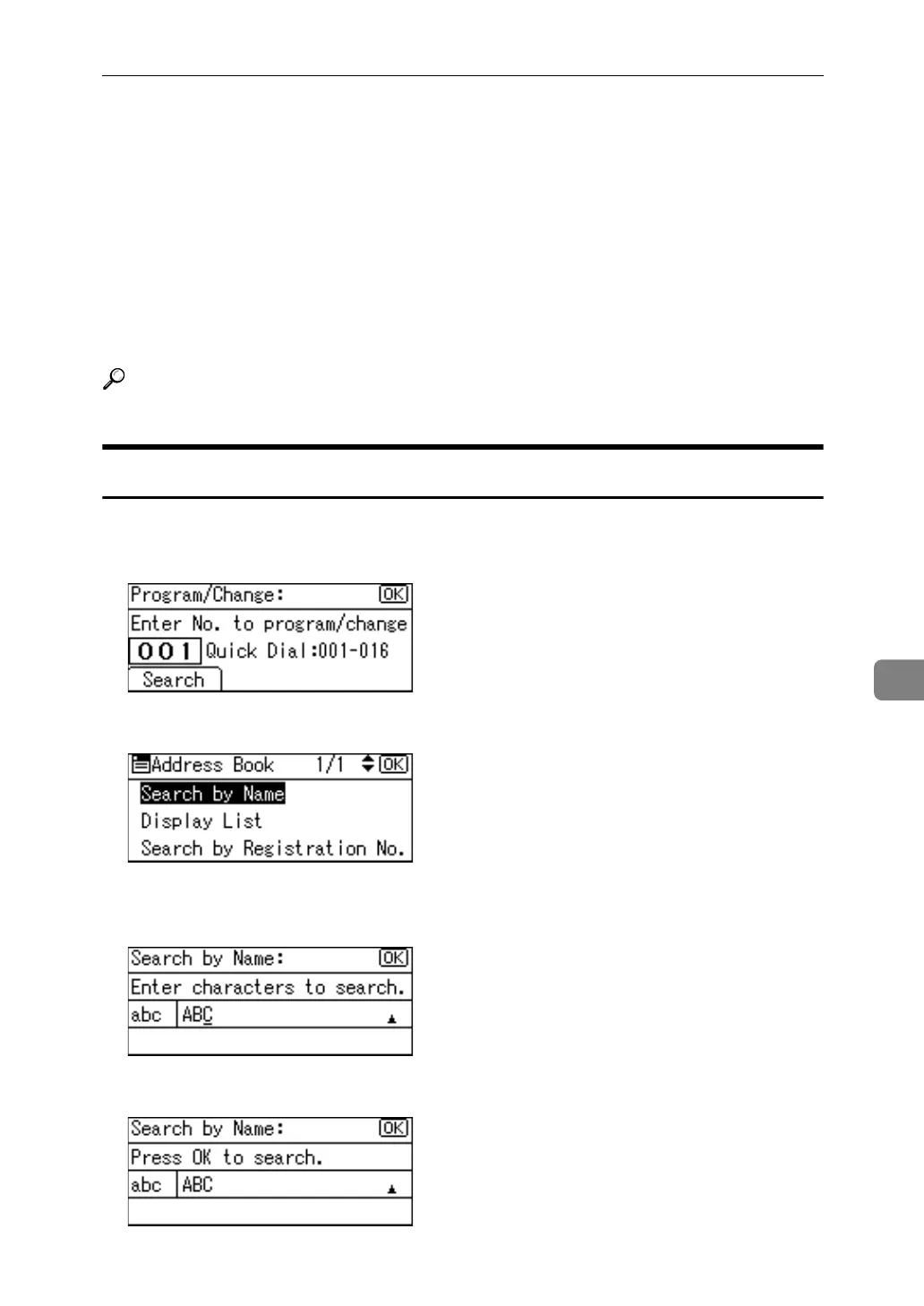 C Enter the name you want to search for, and then press the {OK} key. You can