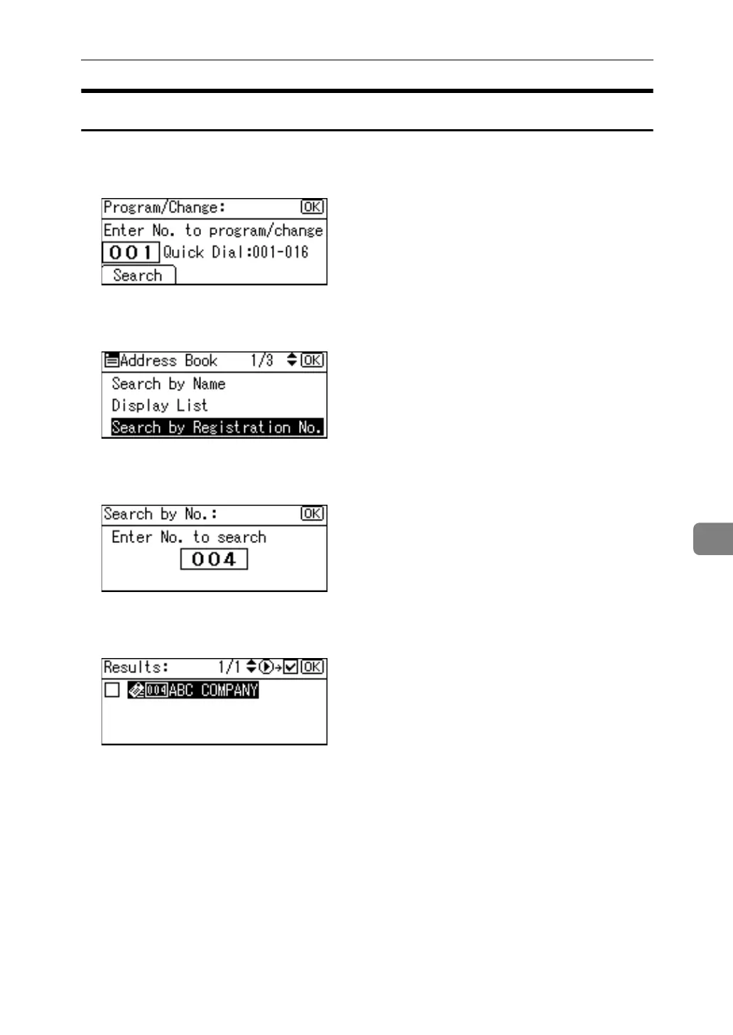 B Select [Search by Registration No.] using {U} or {T}, and then press the { OK}