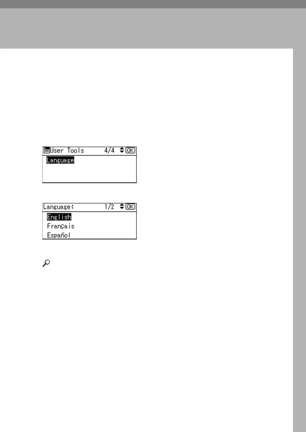 B Select the language using {U} or {T}, and then press the {OK} key.